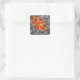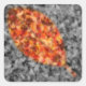 A selectively coloured autumn photograph of fallen crepe myrtle leaves, with a gold-framed leaf shape of bright red, orange, and yellow against a black and white background.
