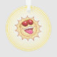 Ornament shows sweet and charming cartoon sun - he smiles so bright, he has to wear shades…
