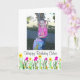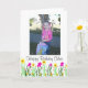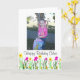 This sweet greeting card features bright spring flowers that are perfect for celebrating the birthday of a little girl. In order to make this greeting card even more special it has been designed so that you can add the name of the birthday girl and a photograph of your choice. If you need any assistance customising this design or if you would like to request a unique greeting card designed just for you please click on "ask this designer" below to send me a message.