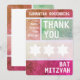 Bright colours. A clean, simple design. Large type. The Star of David... prominently displayed in a row. This modern and unique Bat Mitzvah thank you note features a complementary palette with each section defined by a unique background colour. All of the printed information can be customised with your daughter’s name…just fill in the fields!