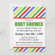 Bright stripes in primary colours of red blue green and yellow make a vibrant baby shower invitation that works well for baby girls, boys as well as if the baby's gender is not yet known. Replace the sample text with your event details. You can change fonts and font sizes and move things around on the invitation to accommodate your event details.
