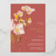 Engagement Party Invitation with pink Buttercups Flowers. Hand drawn flowers on a bright orange and red colourful background. Bright Ornate floral watercolor painting. Abstract nature backdrop with Buttercups Flowers. Vintage elegant flowers, autumn or summer floral design, romantic field. Botanical plot. Botany Engagement Party Invitation. Bright Summer Buttercups Collection.
