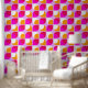 Bright Summer Pink Orange Retro Art Pattern Wallpaper