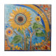 Bright Summery Sunflower Faux Mosaic Sky Blue Ceramic Tile