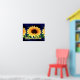 This bright sunflower art poster has hello sunshine in yellow and blue for bold colourful wall art decor in home or office. Original artwork copyright Ann Powell all rights reserved.