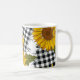 Bright sunflower flowers on checkered patches. Sea Coffee Mug