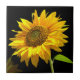 Bright yellow sunflower standing out in contrast to the black background creating a bold effect.