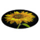 Bright yellow sunflower standing out in contrast to the black background creating a bold effect.