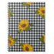 Bright sunflowers on a black and white buffalo check plaid. Vintage seamless pattern. Floral design.