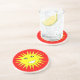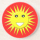 This pretty sandstone coaster This design features a bright smiling yellow sun that is guaranteed to make you smile even on the most miserable days. It is on a red-hot background and has a big white smiley mouth and huge black eyes with white pupils.