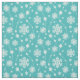 Bright Teal Blue Winter White Snowflake Pattern Fabric