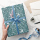 Bright Teal Green Winter White Bird Floral Pattern Wrapping Paper