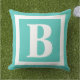 Set off your summer patio decor with this Bright Teal Monogram Initial Large Outdoor Pillow. Customise to any colour. Both sides of pillow are teal and have a big bold white monogram initial framed with wide white border. Also available in different sizes.