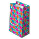 A brightly coloured Small Gift Bag, with a traditional Islamic pattern in bright pink, orange, turquoise blue and light green, outlined in white; from the Posh & Painterly 'Islamic' collection, this pattern can easily be adjusted to fit any Gift Bag.
