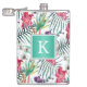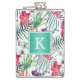 Bright Tropical Floral Pattern with Monogram Hip Flask