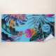 Bright Tropical Foliage Pattern with Hummingbird Beach Towel