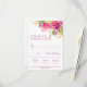 Happy and bright tropical watercolor floral response card cheerful raspberry pinks and purples, avocado greens and golds elegant and beautiful leaves and foliage in a warm and refreshing colour palette. Spring, summer weddings, this gorgeous watercolor wedding invitation suite will add the perfect touch. Bride and groom's monogram on back of reply card in hand script font and split style design.