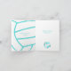 This cute volleyball themed birthday card features the realistic image of an abstractly oversized volleyball that has stylised bright turquoise and white panels on the front of the card - there is a small turquoise and white volleyball on the inside under your custom birthday message - the volleyball's coloured panels have a digitally created textured appearance that is artsy and girly - by katz_d_zynes
