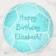 This cute soccer birthday party confetti features the image of a monochromatic turquoise soccer ball on the front and back of each confetti piece, upon which you can customise your text - by katz_d_zynes