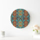 Bright Turquoise Teal Aqua Blue Orange Tribal Art Large Clock