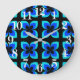 Bright Two Toned Blue Flower Pattern Large Clock