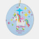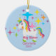 Want something special for that older sibling? This ornament will be a keepsake for many years to come. It has light blue background with a wave of bright coloured stars. There's a unicorn with a bright, colourful mane and tail. Personalise with a name and a year. We also have a Little sister, and a Middle sister in this design.