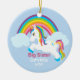 Want something special for that Big Sister? This ornament will be a keepsake for many years to come. It has light blue background with a wave of bright coloured rainbow. There's a unicorn with a bright, colourful mane and tail. It has "Big Sister". Personalise with a name and a year. Choose any shape ornament and personalise. We also have a Little sister, and Middle sister in this design.