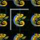 Bright Vibrant Abstract Lizards Holding Leaf Dots Fabric