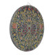 This design features a fabric pattern created by British artist William Morris (1834–1896), who was a founder of the Arts and Crafts movement. It shows green foliage on a blue background with red and pink touches of colour. There are visible sunflower, violet and columbine flowers. The original pattern was first designed in 1883.