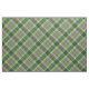 A fabric in a range of finishes with a striped plaid design with alternating diagonal violet, and dark and bright green stripes, with bands of green crossing and forming checks, suitable for a variety of sewing projects from home furnishings to shirts and skirts. The pattern was made from a photo of foxglove flowers.