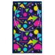 This gift bag features geometric shapes in bright, vivid colours on a deep navy blue background. It's available in 4 different sizes and has a retro vibe that we just love!