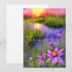Bright watercolor sunset pond and flowers custom card