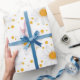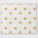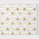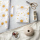 A cheerful floral pattern wrapping paper featuring white daisy-like flowers with bold yellow centres, playfully scattered across a crisp white background. Small yellow dots are sprinkled throughout, adding a charming and sunny accent. Ideal for spring and summer designs, floral art lovers, and anyone drawn to fresh, happy, nature-inspired motifs.