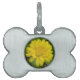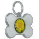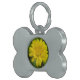 This awesome pet tag features a detailed photograph of a bright yellow marigold. The photograph was taken using macro photography and shows a stunning contrast between this bright yellow flower and its dark green leaves.