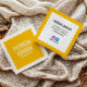Features two lines of custom bold text, ideal for highlighting your name or tagline in an eye-catching way. On the reverse, the same scalloped frame design, now in white with a yellow border creating a harmonious contrast. You have space for your full contact details and two social media icons (Facebook and Instagram) alongside space for your handles or account names. Social media icons can be removed or changed