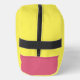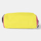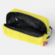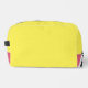 A bright yellow toiletry bag with a pink at the bottom.