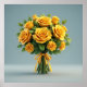 Vibrant yellow rose bouquet with lush green leaves, set against a calm blue backdrop. Perfect for gifts, weddings, spring decoration, and cheerful stock imagery.