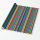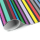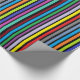 Birthday Gift wrap with red, blue, purple, green, orange, lime, and yellow stripes.