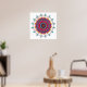 This fun poster features a bold mandala in rich shades of pink, purple, turquoise and golden yellow.