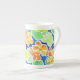 Brightly Coloured Nasturtiums Flowers on Blue Bone China Mug