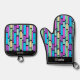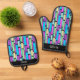 Brightly Coloured Retro Blocks Oven Mitt & Pot Holder Set