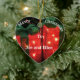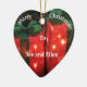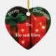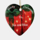 This lovely colourful heart shaped Christmas tree ornament features bright red illuminated presents with green bows and the editable text “Merry Christmas To Joe and Ellen“. A lovely gift to show you care especially if you live apart, or cannot meet during the festive season.