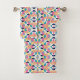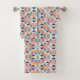 Brightly patterned towels and a washcloth