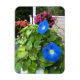 Bring the brilliance of full summer to any area of home, office, or car with a tiny celebration of color. The bluest of morning glories and a profusion of leaves and vines contrast with luscious melon-hued impatiens and petunias on this vivid magnet. Perfect to give as a gift, or use it to help you keep track of life’s details while you enjoy its miniature garden!