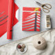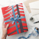 Bright scarlet red wrapping paper, with the image of a silver tree and a golden star. Unique wrapping paper for your unique gifts! From Scarebaby Design.