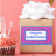 A sheet of colourful Stick-on Labels with a pattern of different sized Pink and Blue dots on a Magenta background.d, from a handpainted paper collage by Judy Adamson. (Delete the text if you want to leave the labels blank to write on by hand.) So many uses!