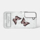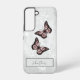 Charge your electronic device with a Brilliant Pink Butterflies Samsung Galaxy Case. Case design features brilliant butterflies resting on a white floral vine against a grey grunge background.