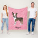 Brindle Boston Terrier Dog On Pink Hearts And Name Fleece Blanket