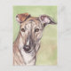 This postcard features a reproduction of my original watercolor and coloured pencil painting of a greyhound.