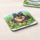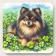 Brindle Pomeranian Watercolor Clover Shamrock Coaster